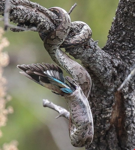 Trong tự nhiên, không hiếm những trường hợp chim chóc và các động vật nhỏ trở thành con mồi dễ dàng cho các loài trăn lớn.