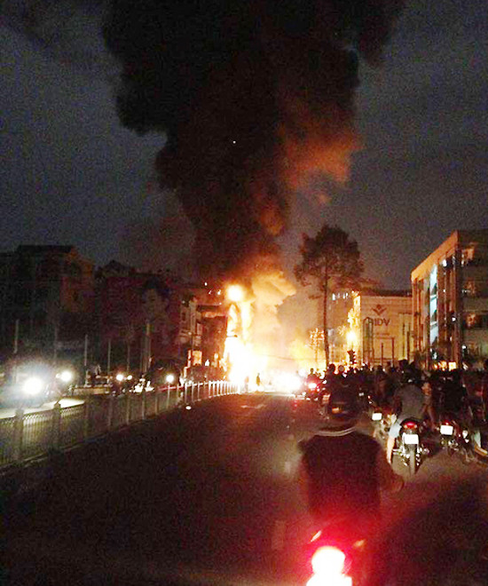 Khoảng 21h ngày 30/12/2014, khói và lửa bất ngờ bốc lên sau tiếng nổ ở khu vực tiệm karaoke New rồi nhanh chóng lan sang các căn liền kề. Thời điểm lửa bùng lên gió thổi khá to, đẩy lửa lan nhanh từ tiệm karaoke sang cửa hàng xe máy và karaoke Idol (từ phải sang trái). Hoả hoạn chỉ được dập tắt sau hơn một tiếng cảnh sát PCCC có mặt.