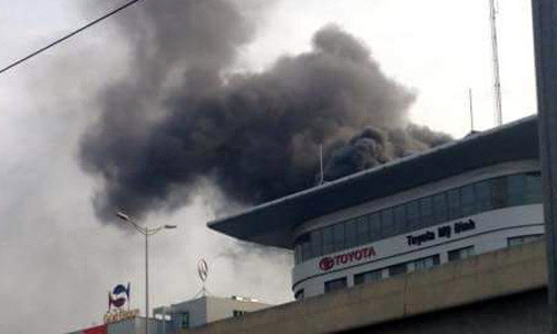 Vụ cháy xảy ra tại tòa nhà Toyota Mỹ Đình (số 15 đường Phạm Hùng). Ảnh: Vnexpress.