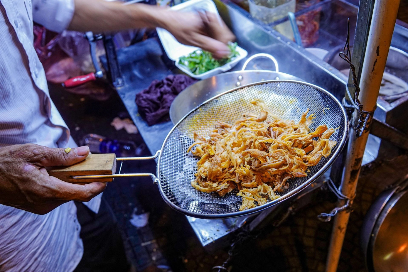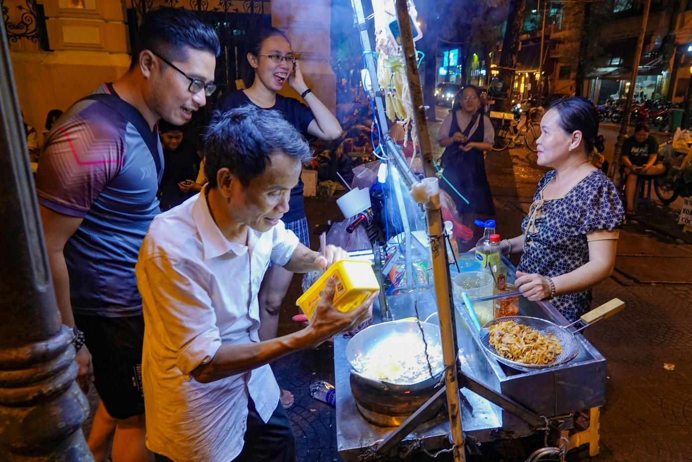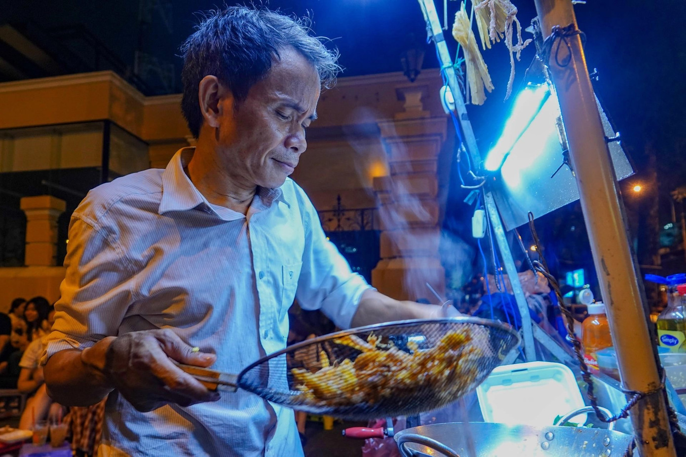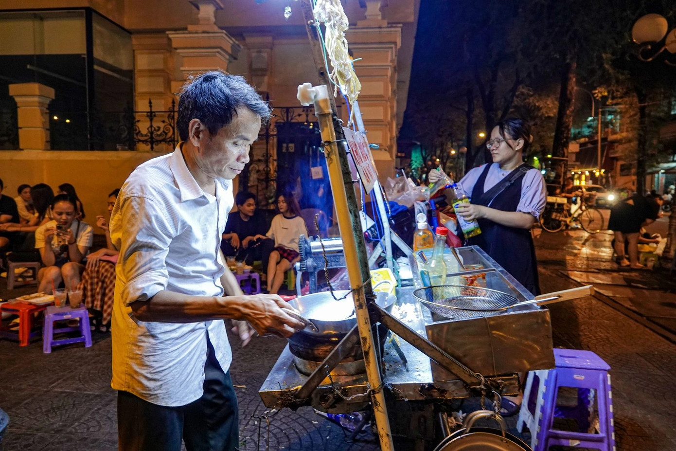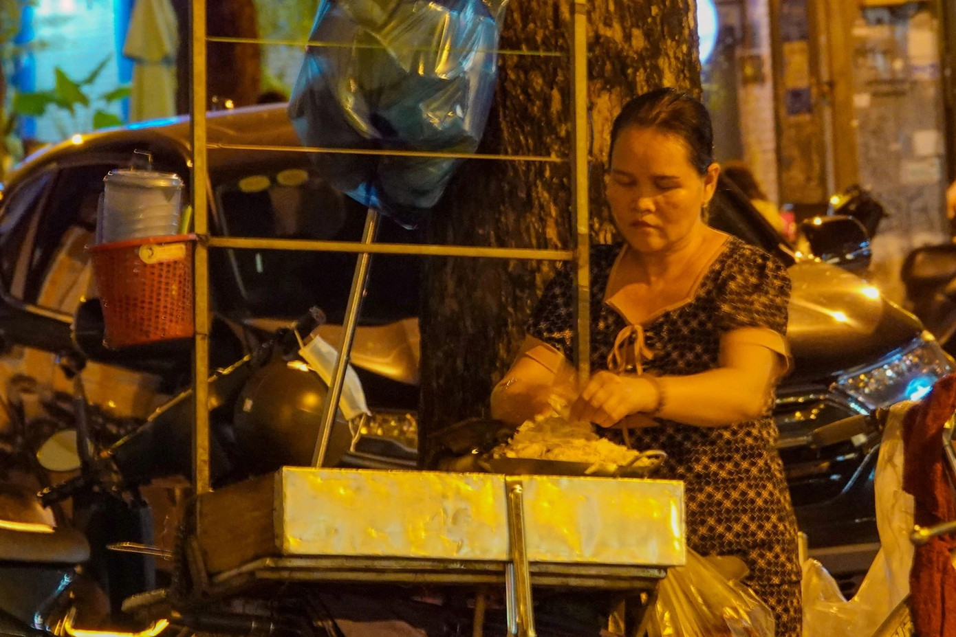 Giữa những âm thanh của phố phường, tiếng xèo xèo trong chảo từ xe hàng của anh Thể vẫn đều đều, hòa với nhịp sống của thành phố đêm không ngủ như suốt 26 năm qua.