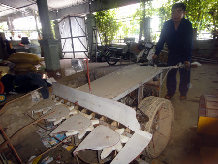 Do độ găm sâu của hạt chưa đạt yêu cầu, nên hiện "kỹ sư chân đất" này đang trong quá trình chế tạo lại chiếc máy gặt, gieo trỉa hạt giống đời thứ 3.
