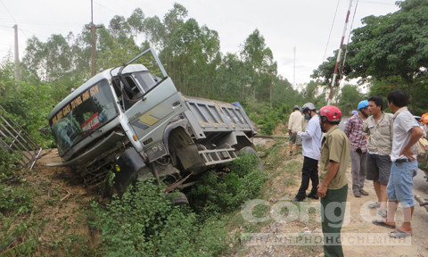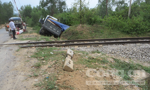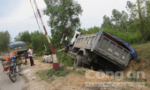 Vào thời gian trên, ô tô tải BKS 37C 07370 chở tren xe hơn 4 khối cát lưu thông tại km 20 +800 theo hướng Nghĩa Đàn – Cầu Giát bỗng dưng lao từ trên dốc 10% xuống qua đường sắt rồi lật nghiêng bên vách đồi khiến đầu xe hư hỏng bẹp dúm.