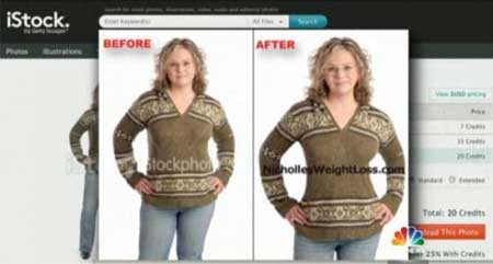 The Today Show còn phát hiện, một số quảng cáo sản phẩm giảm cân đã sử dụngPhotoshop và các kỹ thuật chỉnh sửa ảnh khác để khiến người mẫu trông thon gọnhơn tới gần 5kg chỉ trong vài phút.