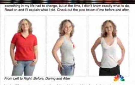 The Today Show cũng phát hiện hình ảnh của một phụ nữ đang xuất hiện trên baobì và tờ quảng cáo cho nhiều loại thuốc giảm cân khác nhau. Cô gái được đănghình cùng các lời chứng thực về hiệu quả của sản phẩm, với tên gọi khác nhau, từ"Jenny Conrad" tới "Kathy Thompson".