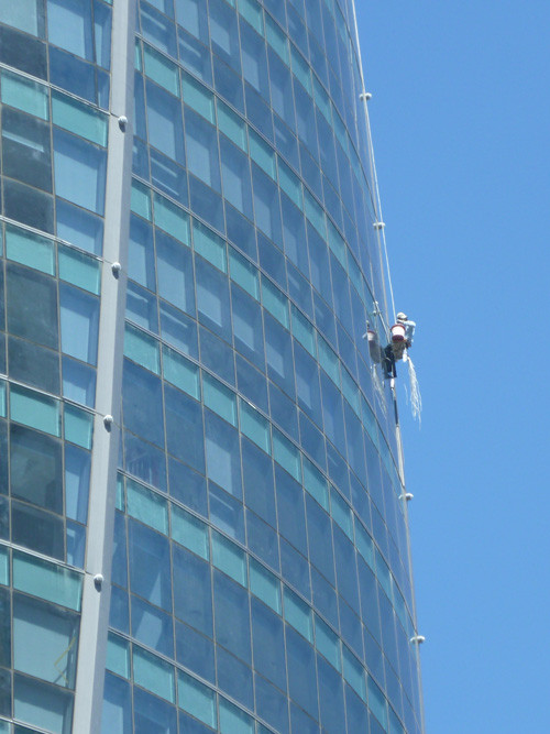 Tận mắt chứng kiến những người thợ lau kính làm việc, tôi mới thấy hết được những nguy hiểm của nghề. Tại tòa nhà Trung tâm hành chính TP.Đà Nẵng, giữa cái nắng gay gắt, đứng dưới đường Trần Phú nhìn lên tòa nhà 25 tầng, những thợ lau kính cheo leo trên không trung với cảm giác vô cùng hồi hộp. Họ đang tập trung cao độ để làm việc. Tòa nhà bên ngoài được bao bọc bằng kính, nên hầu như không có chỗ đu bám, mỗi người phải tự giữ mình cho thật chắc bằng những dụng cụ đặc dụng. Mỗi khi có gió, dù nhẹ, nếu chỉ lơ là một chút, họ lập tức bị thổi đánh đu như con lắc đồng hồ giữa không trung.