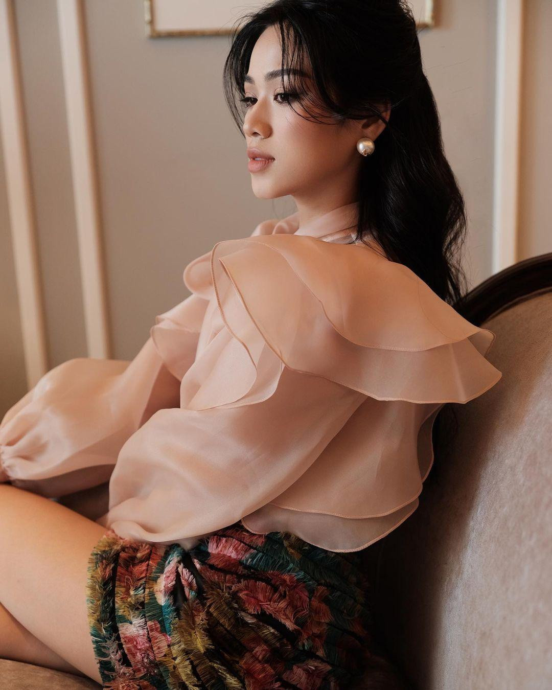 Mới đây, nàng hậu khoe lên trang cá nhân loạt ảnh cô mặc đồ phong cách mùa Thu xinh đẹp sang chảnh. Chiếc áo sơ mi lụa bèo nhún và thắt nơ mang đến cho Đỗ Thị Hà phong cách có phần “bánh bèo” nhưng lại cực kỳ hợp lý.