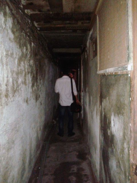 Sau đó, anh dẫn mình lên một chiếc cầu thang nhỏ. Theo lời giới thiệu của anhthì đây là lối đi của 8 hộ gia đình sinh sống trên tầng 2 và tầng 3 của tòa nhà.Nhưng rõ ràng, chiếc cầu thang đã cũ và bị mối, mọt rồi cả chuột đục phá đến tantành.