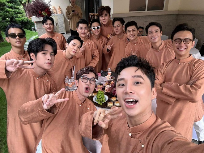 Dàn phù dâu - phù rể đều là bạn bè lâu năm với cô dâu - chú rể nên ai cũng vui tươi rạng rỡ hết mức trong ngày trọng đại của Midu và Minh Đạt dù phải dậy từ sáng sớm để sửa soạn.