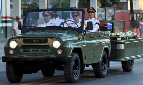 Khoảng 40 phút sau, khi chiếc xe tiến vào nghĩa trang, thì tại thủ đô Havana, 21 phát đại bác đã được bắn lên, báo hiệu thời khắc nghi lễ an táng bắt đầu.