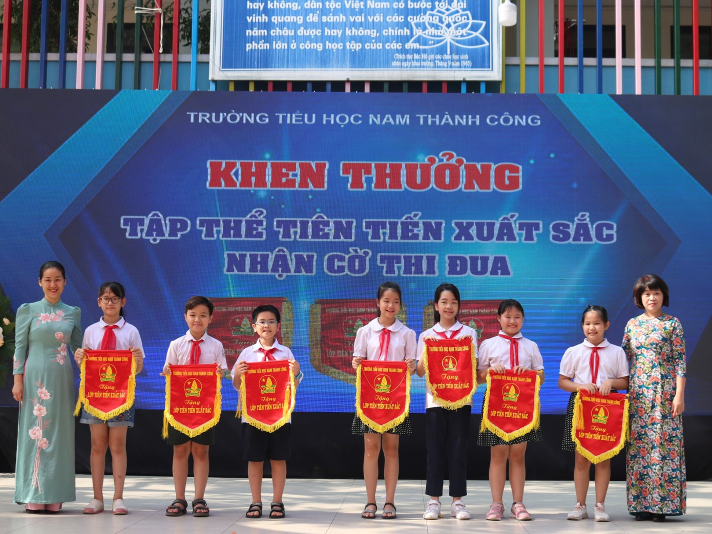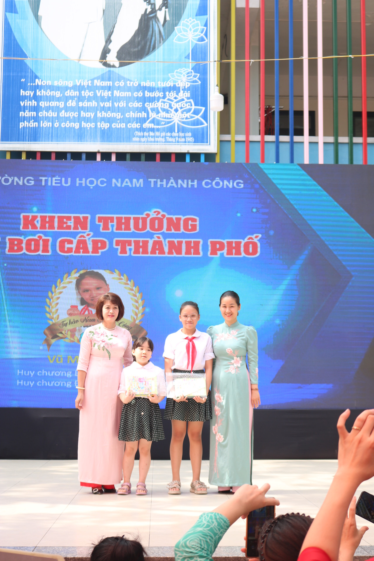 Trao thưởng cho những tập thể lớp, cá nhân đạt thành tích tiêu biểu trong năm học là phần không thể thiếu trong các lễ bế giảng và trường Tiểu học Nam Thành Công cũng không ngoại lệ. Tween đều nở nụ cười tươi rói khi nhận giấy khen, cờ thi đua hay những phần quà nhỏ trên sân khấu.