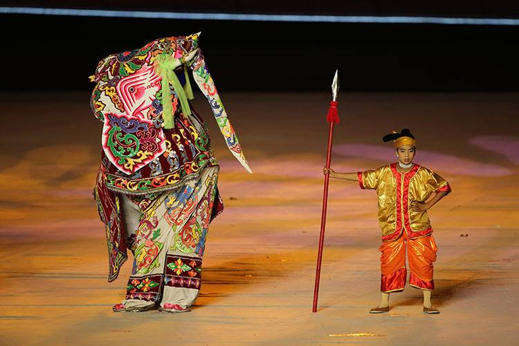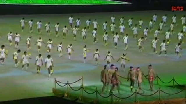 | Lễ bế mạc đậm chất văn hóa truyền thống được coi như một lời chào đầy ý nghĩa mà người Myanmar gửi đến cho bạn bè khu vực ASEAN. Họ đang bước vào quá trình hội nhập nhưng không quên những nét làm nên truyền thống của mình. Đây là một trò chơi dân gian của Myanmar tương tự như trò Rồng rắn lên mây của Việt Nam |