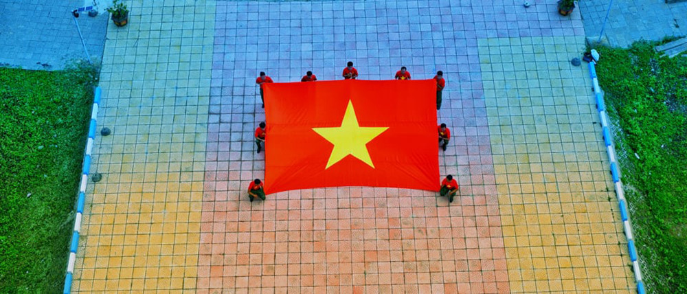 Trong ảnh là Lễ chào cờ của các chiến sĩ đang công tác trên đảo Cồn Cỏ, tỉnh Quảng Trị.