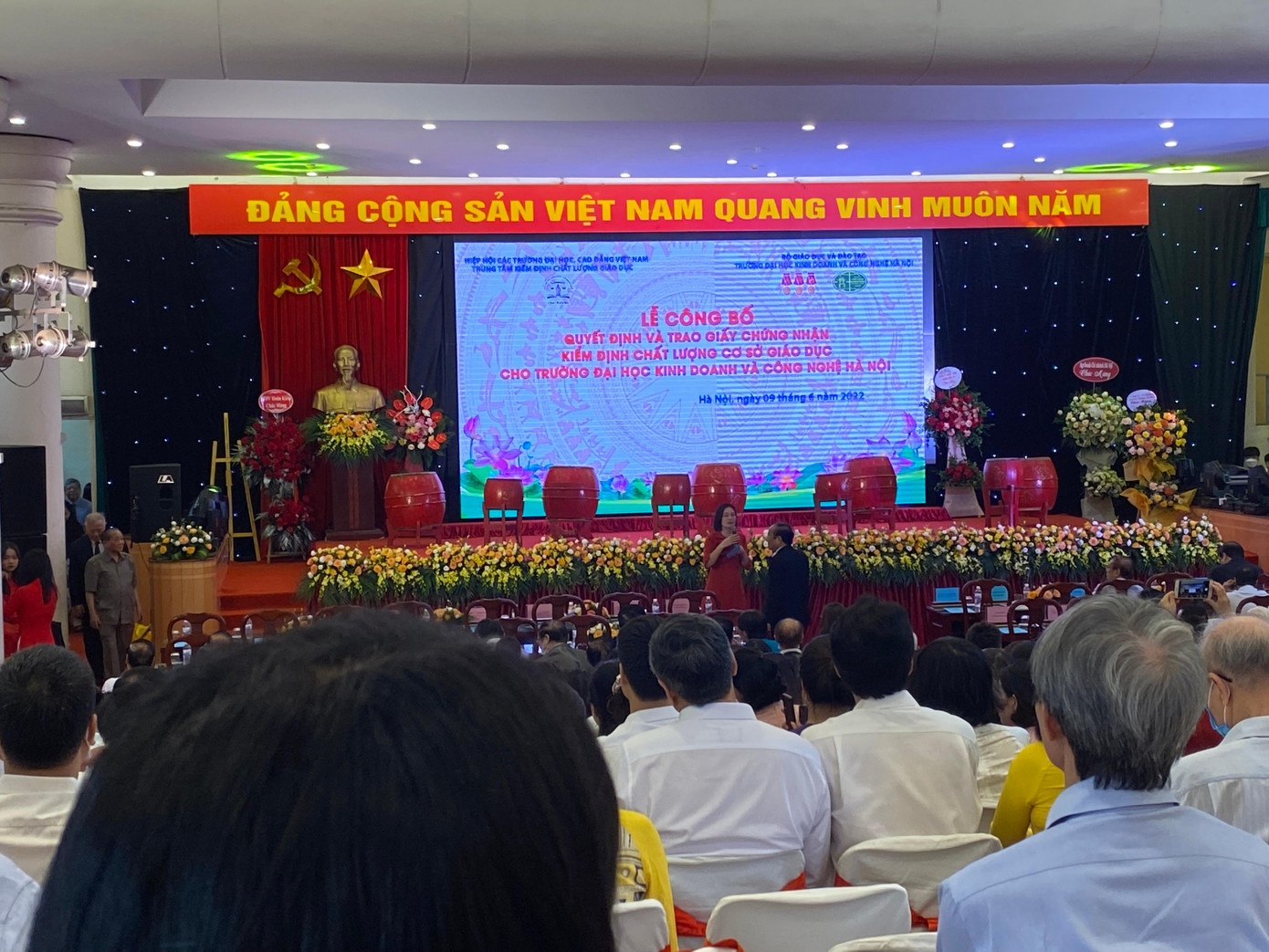 Chương trình “Lễ công bố Quyết định và trao giấy chứng nhận kiểm định chất lượng giáo dục cho trường Đại học Kinh doanh và Côn g nghệ Hà Nội” được diễn ra trong không khí trang trọng với sự tham gia của các thành viên Đoàn chuyên gia đánh giá ngoài đến từ Trung tâm Kiểm định chất lượng giáo dục, Đại diện Bộ Giáo dục và Đào tạo; các đồng chí lãnh đạo thuộc Sở, Bộ, Ban, Ngành, Đoàn thể; các Cơ quan thông tấn báo chí; các Cơ quan, Khách mời địa phương, Đảng uỷ Khối, Hiệp hội các trường Đại học, Cao đẳng Việt Nam, Hội khoa học Kinh tế, Phòng An ninh Chính trị nội bộ (PA03); cùng toàn thể cán bộ, giảng viên, nhân viên, sinh viên trường Đại học Kinh doanh và Công nghệ Hà Nội.