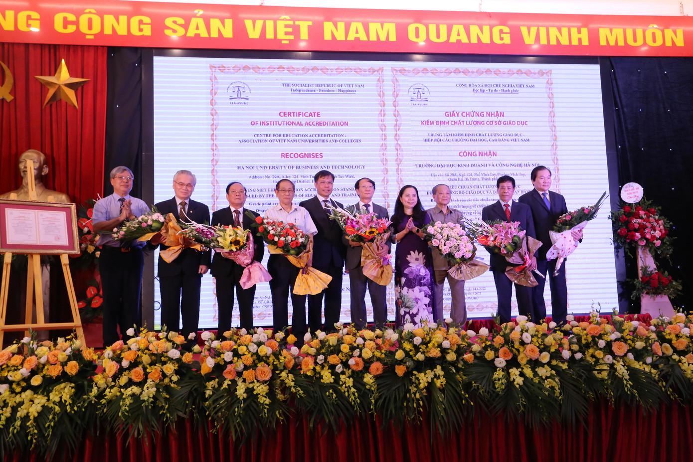 Tại buổi lễ, trường Đại học Kinh doanh và Công nghệ Hà Nội chính thức được công nhận đạt chuẩn kiểm định chất lượng giáo dục theo bộ tiêu chuẩn mới của Bộ Giáo dục & Đào tạo. Đây là bộ tiêu chuẩn chất lượng AUN-QA, được xây dựng trên cơ sở đảm bảo sự tương thích với bộ tiêu chuẩn của Mỹ và Châu Âu, đã được Bộ trưởng của các nước ASEAN chấp nhận để sử dụng thống nhất trong các trường Đại học của các quốc gia thuộc khu vực ASEAN. Bộ tiêu chuẩn kiểm định chất lượng giáo dục của AUN-QA gồm 25 tiêu chuẩn với 111 tiêu chí. Các tiêu chuẩn được chia thành 4 nhóm, bao gồm: đảm bảo chất lượng về chiến lược; đảm bảo chất lượng về hệ thống; đảm bảo chất lượng về chức năng hoạt động (đào tạo, nghiên cứu khoa học, kết nối – phục vụ cộng đồng); và kết quả hoạt động của Nhà trường.