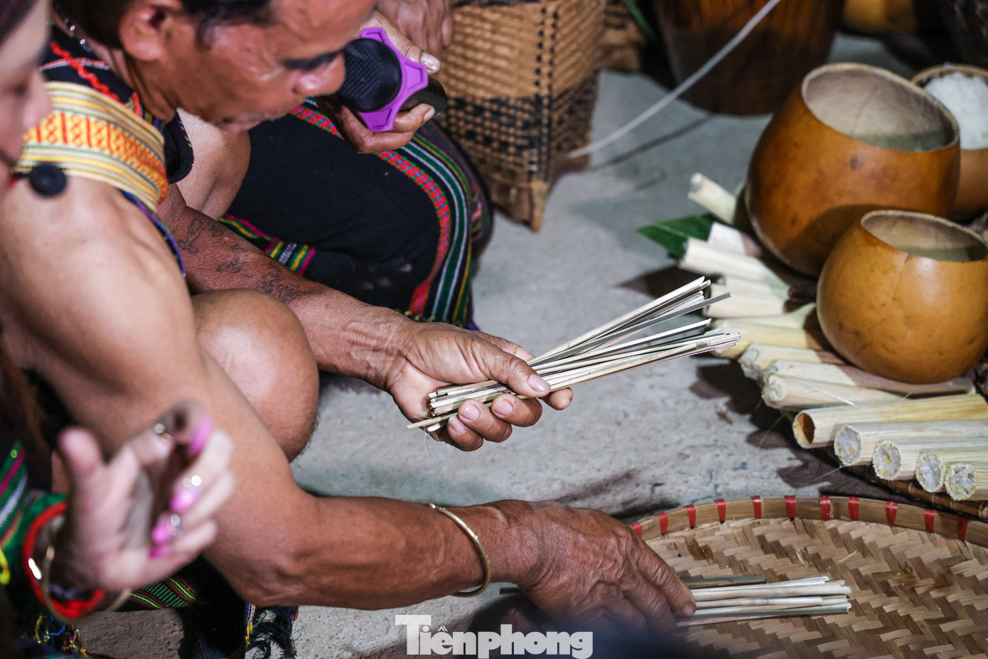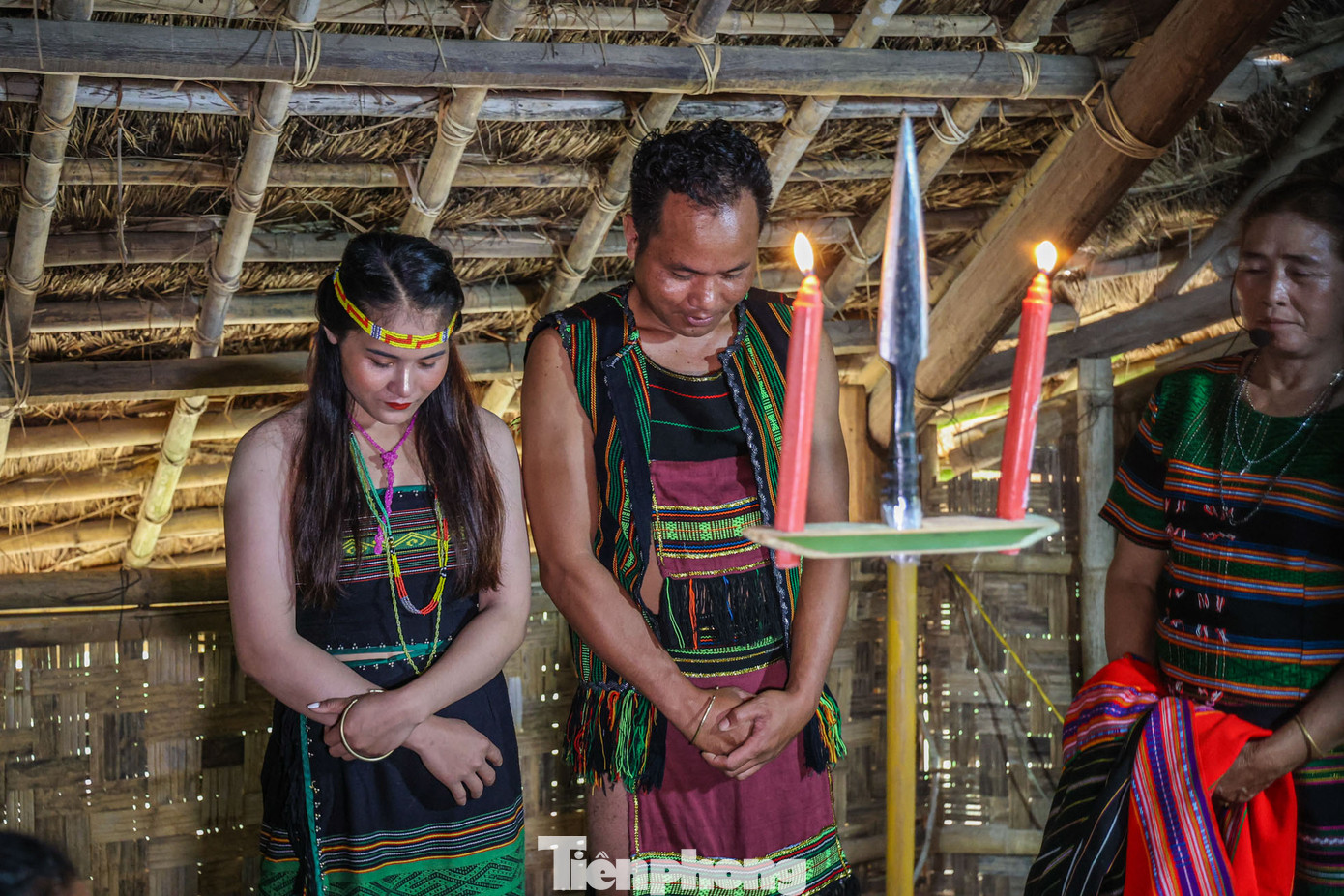 | Khi vào trong nhà, nhà trai bày lễ vật lên một chiếc nia. Già làng, bố cô dâu dẫn cô dâu ra, đồng thời người làm mối nhà trai đưa chú rể ra trình diện hai bên gia đình. Hai bên gia đình, một lần nữa hỏi ý kiến đôi trai gái xem họ có gì thay đổi không. |