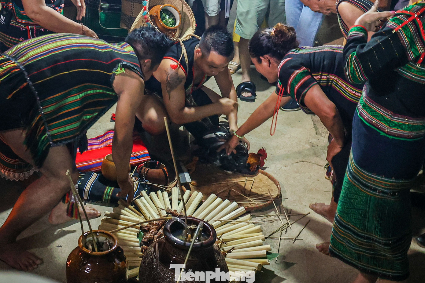 | Sau khi xong thủ tục lễ nghi là cuộc vui giữa họ hàng thân thuộc chúc tụng cô dâu chú rể . Mọi người cùng uống rượu, ca hát, nhảy múa theo nhịp chiêng rộn rã suốt ngày đêm. Những người đến dự đám cưới mang theo rượu, thuốc lá, gạo nếp... góp vào ngày vui của gia chủ. |
