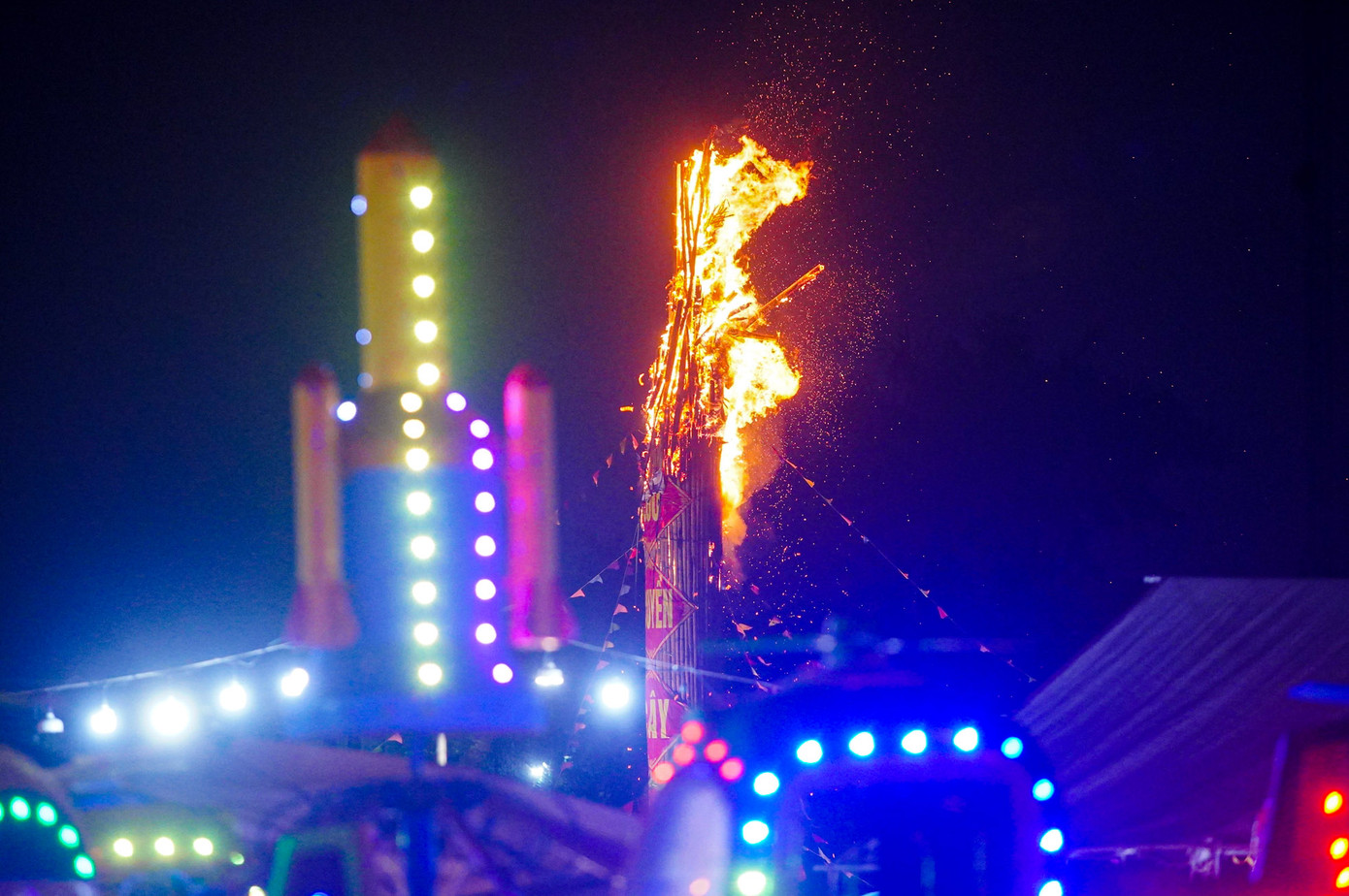 Nhân dân và du khách thập phương theo dõi không rời mắt nghi thức đốt cây đình liệu.