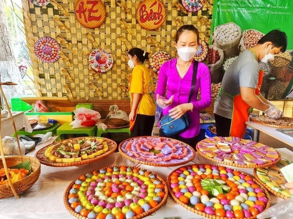 Đến với lễ hội, du khách sẽ có cơ hội trải nghiệm và thưởng thức những hương vị đặc trưng của ẩm thực Nam Bộ với đủ các loại bánh dân gian tràn ngập sắc màu. Bên cạnh những gian hàng ẩm thực còn có những gian trưng bày, giới thiệu sản phẩm công nghiệp, sản phẩm địa phương Nam Bộ được trang trí, bày biện vô cùng hấp dẫn.