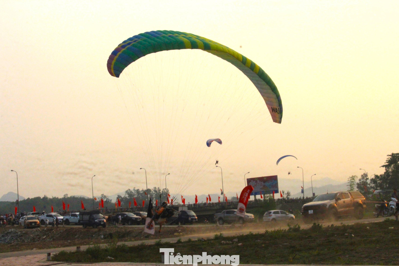 | Người dân chiêm ngưỡng màn biểu diễn ấn tượng từ hàng chục dù lượn |