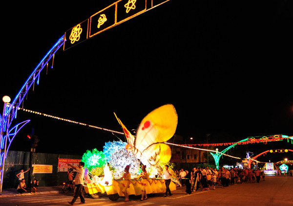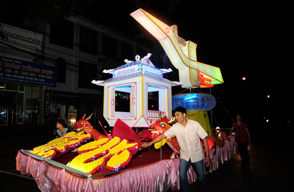 Các linh vật, biểu tượng được lắp trên những chiếc xe, được kéo đi quanh những trục đường chính của thành phố.