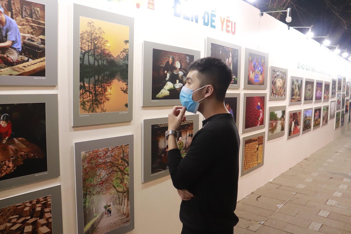 | Các bạn trẻ thăm triển lãm ảnh về Hà Nội. |