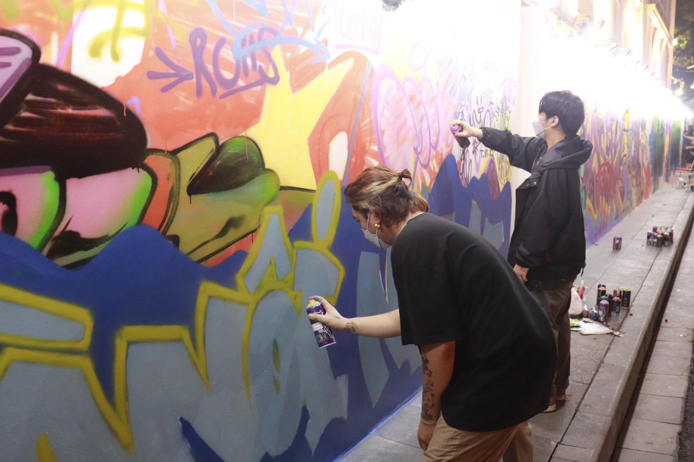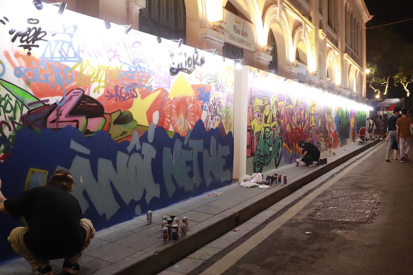 | Các tác phẩm vẽ trực tiếp tại chỗ bức tường graffity chủ đề Hà Nội. |