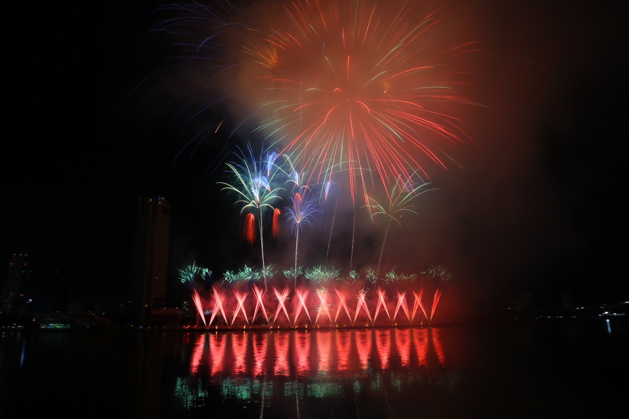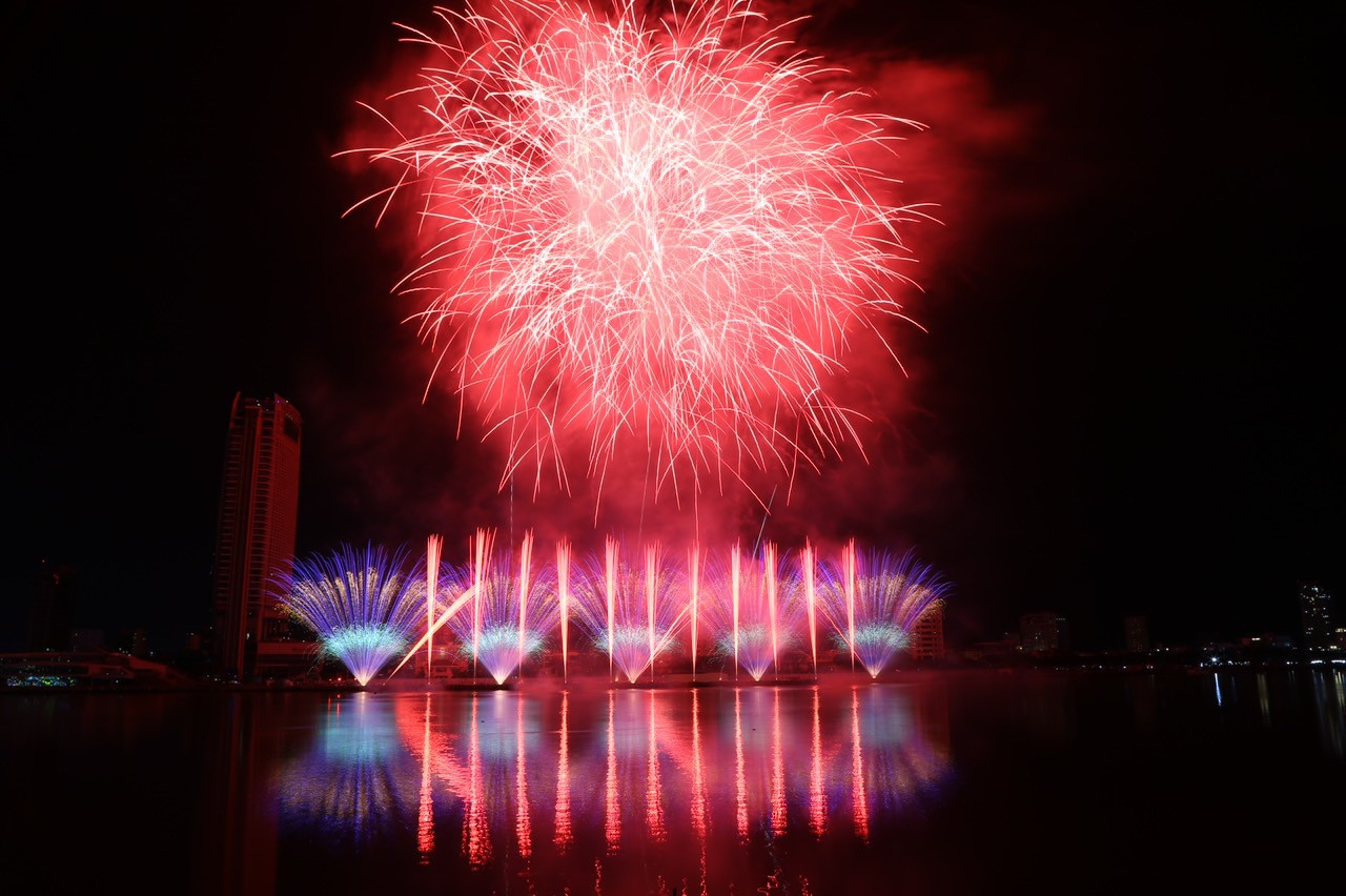 | Sông Hàn rực rỡ màu sắc với màn pháo hoa. |