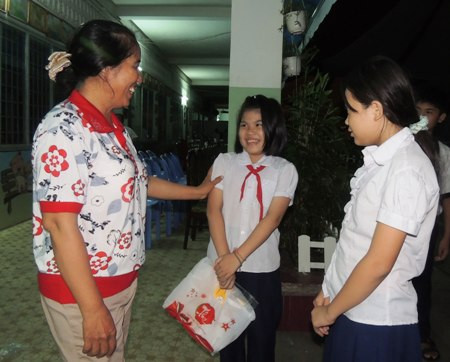 “Các em rất thiệt thòi nhưng còn có những em nhỏ không được đến trường hay phải đu dây, chui vào túi ni lon qua sông đến trường. Thầy trò chúng ta còn may mắn hơn nhiều nên hãy thật sự cố gắng”.