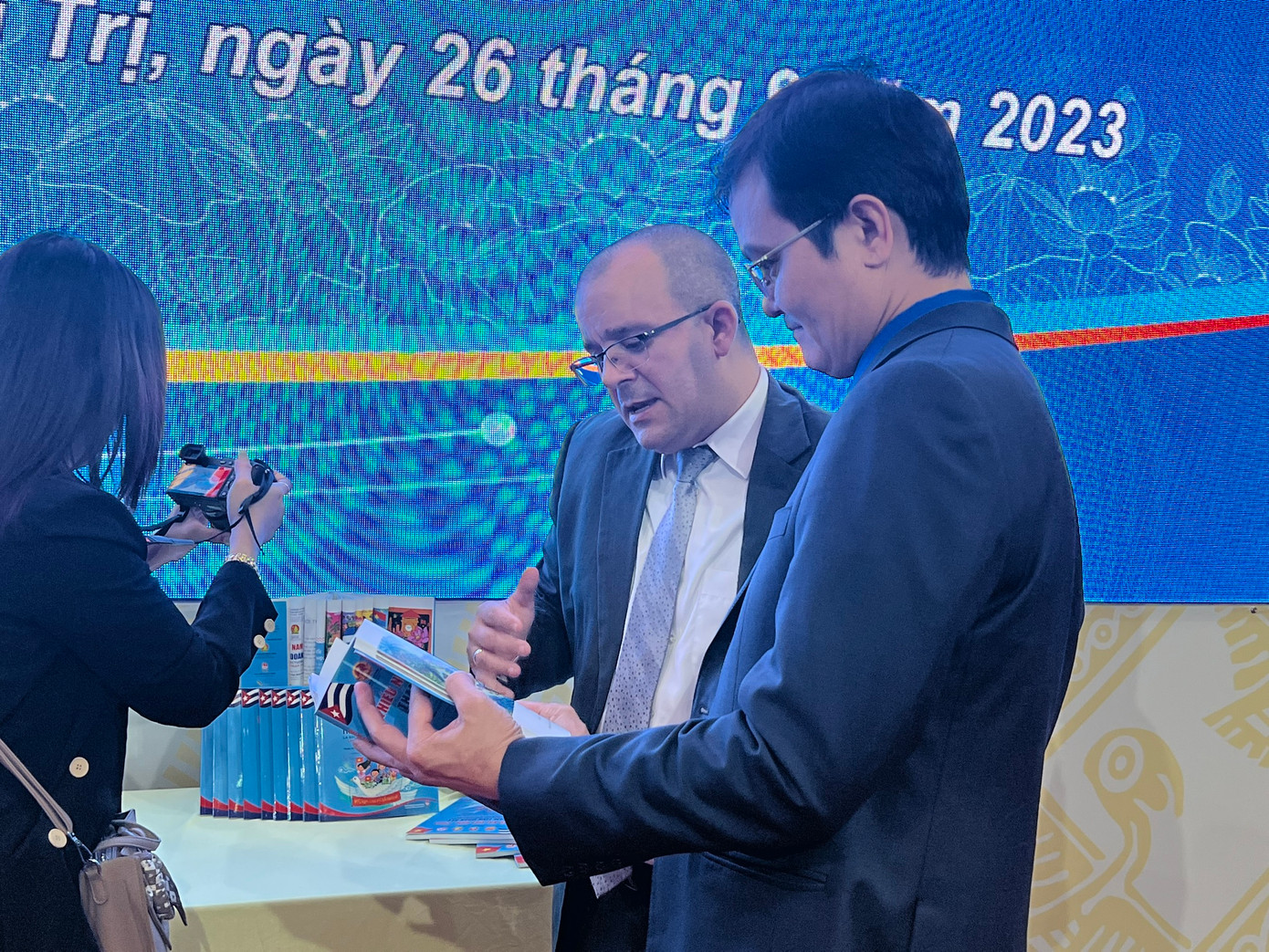 | Tại Lễ kỷ niệm chiều tối 26/9, đã diễn ra lê trao giải cuộc thi vẽ tranh này. Bí thư thứ nhất Trung ương Đoàn Bùi Quang Huy, Thứ trưởng Bộ Ngoại giao Hà Kim Ngọc, Phó Chủ tịch UBND tỉnh Quảng Trị Hoàng Nam, Đại sứ Cuba tại Việt Nam Orlando Nicolas Guillen trao giải cuộc thi. |