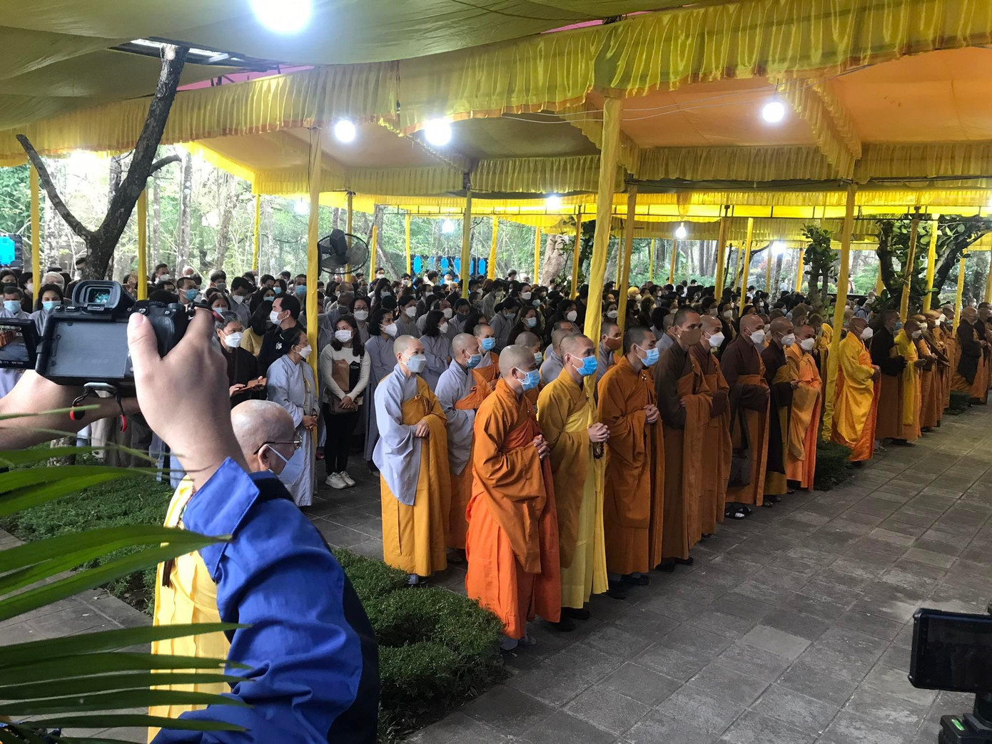 | Chư tăng ni, Phật tử, người dân dự lễ nhập kim quan của Thiền sư Thích Nhất Hạnh |