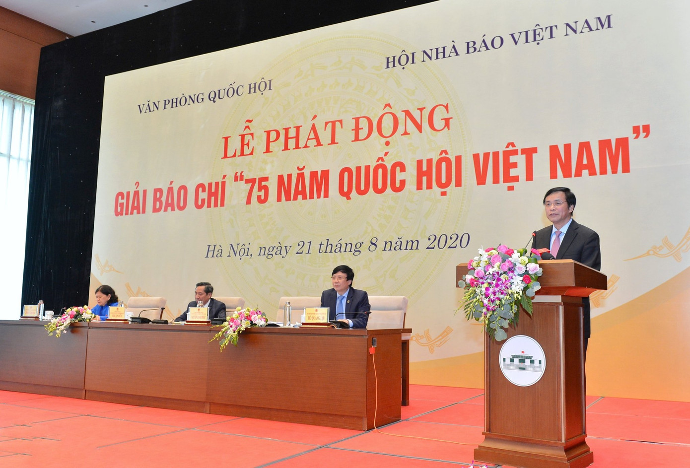Phát biểu tại buổi lễ, Tổng thư ký Quốc hội, Chủ nhiệm Văn phòng Quốc hội Nguyễn Hạnh Phúc nhấn mạnh, chỉ một ngày sau khi đọc Bản tuyên ngôn độc lập khai sinh ra nước Việt Nam Dân chủ Cộng hòa, tại phiên họp đầu tiên của Chính phủ lâm thời, Chủ tịch Hồ Chí Minh đã đề nghị, một trong 6 nhiệm vụ cần thực hiện ngay là “Tổ chức càng sớm càng hay cuộc Tổng tuyển cử với chế độ phổ thông đầu phiếu để bầu ra Quốc hội”. Vượt qua muôn vàn khó khăn, cuộc Tổng tuyển cử đầu tiên bầu Quốc hội Việt Nam của nhân dân ta đã được tổ chức thành công vào ngày 6-1-1946. Đây là lần thứ hai Văn phòng Quốc hội phối hợp với Hội Nhà báo Việt Nam tổ chức Giải báo chí viết về Đề tài Quốc hội.