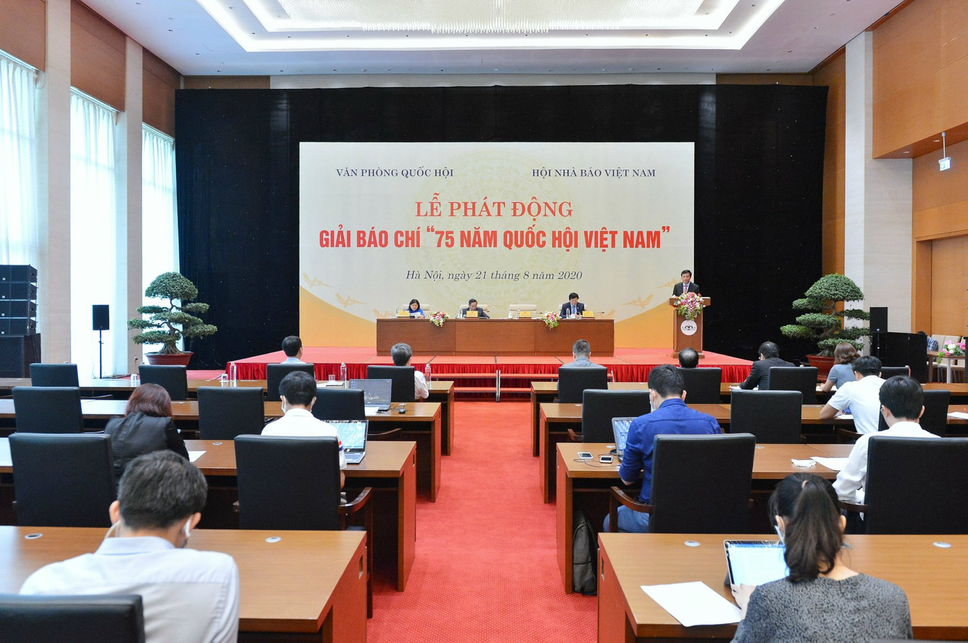 Chủ trì Lễ phát động Giải báo chí có: Đồng chí Nguyễn Hạnh Phúc, Ủy viên Ban chấp hành Trung ương Đảng, Ủy viên Ủy ban Thường vụ Quốc hội, Tổng Thư ký Quốc hội, Chủ nhiệm Văn phòng Quốc hội, Trưởng ban Chỉ đạo Giải báo chí “75 năm Quốc hội Việt Nam”; Đồng chí Thuận Hữu, Ủy viên Ban chấp hành Trung ương Đảng, Tổng Biên tập Báo Nhân dân, Phó Trưởng ban Tuyên giáo Trung ương, Chủ tịch Hội Nhà báo Việt Nam, Đồng Trưởng ban Chỉ đạo Giải báo chí; Đồng chí Hoàng Thị Hoa, Phó Chủ nhiệm Ủy ban Văn hóa, Giáo dục, Thanh niên, Thiếu niên và Nhi đồng của Quốc hội; Thành viên Ban Chỉ đạo Giải báo chí, Đồng chí Hồ Quang Lợi, Phó Chủ tịch Thường trực Hội Nhà báo Việt Nam, Đồng Trưởng ban Tổ chức Giải báo chí “75 năm Quốc hội Việt Nam”.
