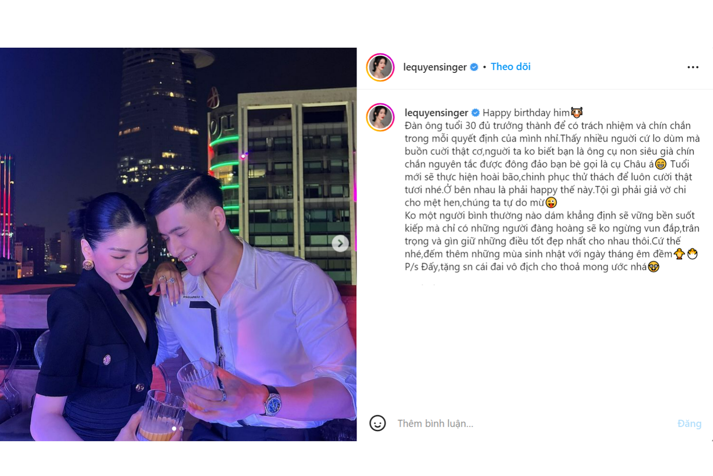 Đặc biệt, Lệ Quyên cũng nhắn nhủ một câu cực ngọt ngào tới tình trẻ khiến fan của cặp đôi thích thú: "Cứ thế nhé, đếm thêm những mùa sinh nhật với ngày tháng êm đềm".