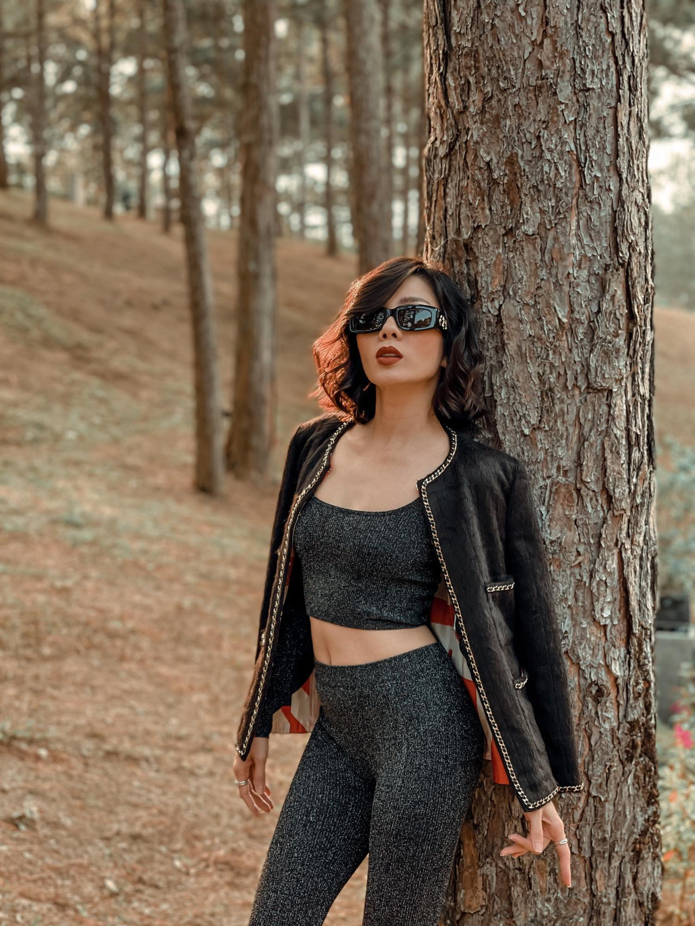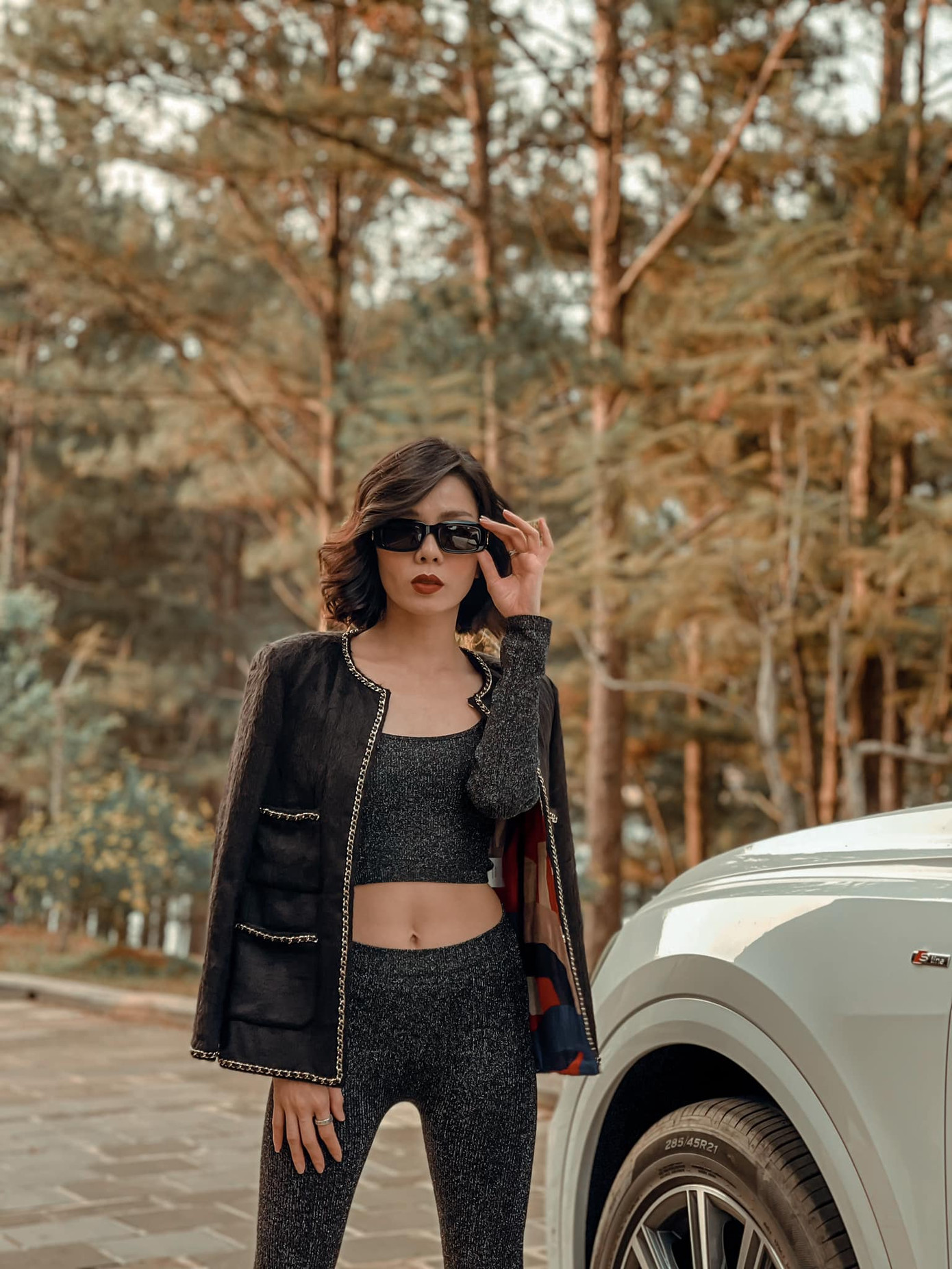 Thời gian gần đây, Lệ Quyên liên tục khoe vòng eo con kiến khi diện đồ bó sát và tích cực lên hình với crop-top.