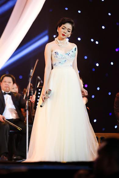 Cô được NTK Hoàng Hải trực tiếp chăm lo về trang phục trong hậu trường.