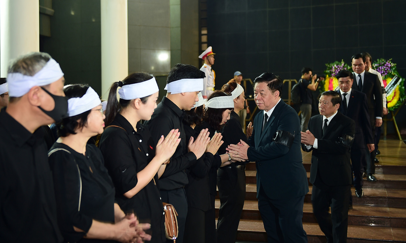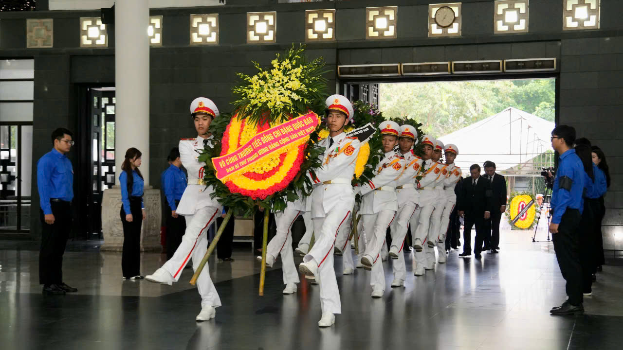 Đồng chí Nông Đức Mạnh – nguyên Tổng Bí thư BCH T.Ư Đảng; đồng chí Trương Tấn Sang – nguyên Uỷ viên Bộ Chính trị, nguyên Chủ tịch nước CHXHCN Việt Nam; đồng chí Võ Văn Thưởng – nguyên Uỷ viên Bộ Chính trị, nguyên Chủ tịch nước CHXHCN Việt Nam; đồng chí Nguyễn Khoa Điềm – nguyên Uỷ viên Bộ Chính trị; đồng chí Trần Thanh Mẫn - Uỷ viên Bộ Chính trị, Chủ tịch Quốc hội; đồng chí Võ Thị Ánh Xuân – Phó Chủ tịch nước CHXHCN Việt Nam, gửi vòng hoa kính viếng.