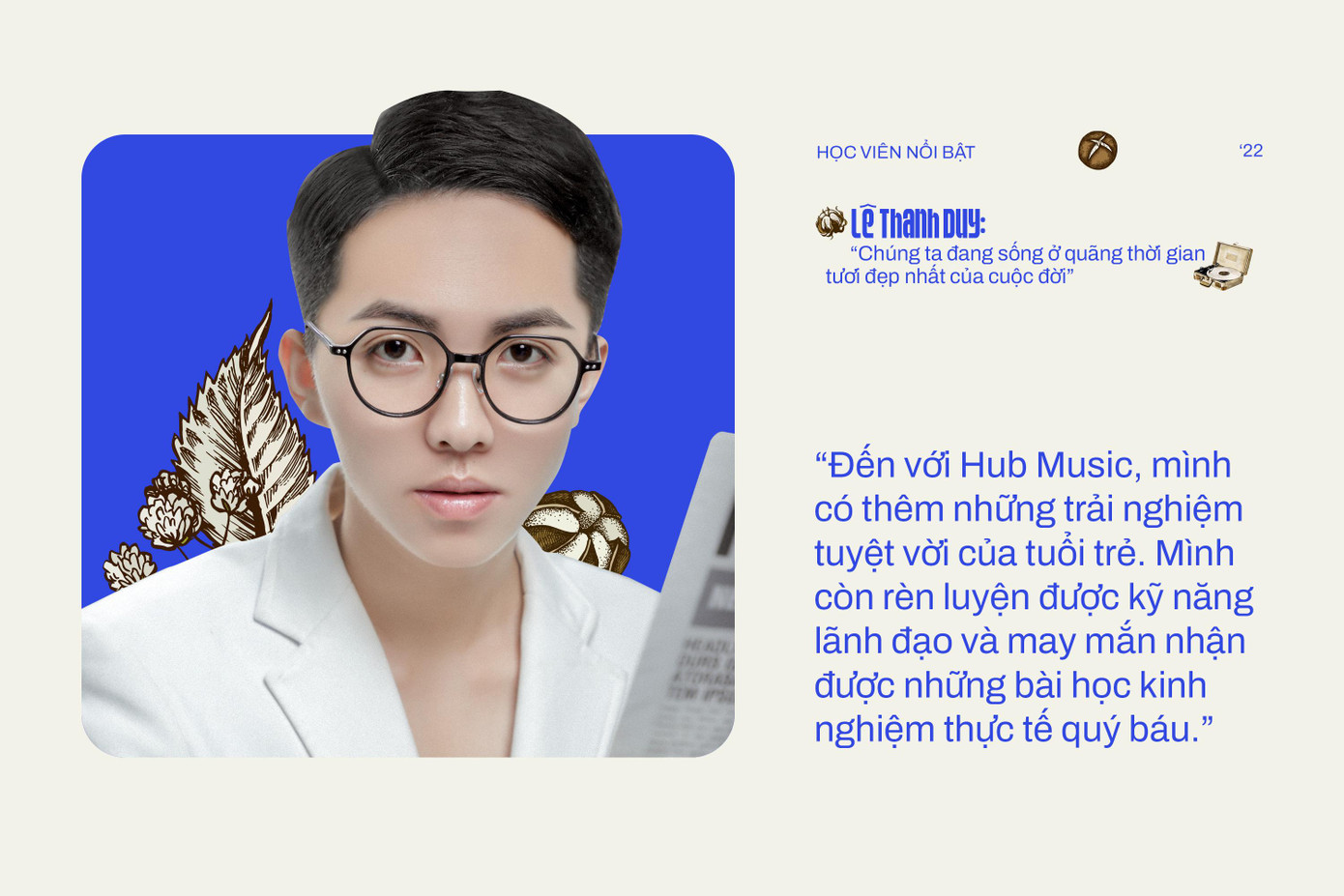 Được biết, Lê Thanh Duy hiện đang đảm nhận vai trò thành viên Ban chủ nhiệm Câu lạc bộ Hub Music tại Arena Multimedia. “Đến với Hub Music, mình có thêm những trải nghiệm tuyệt vời của tuổi trẻ. Đồng thời, mình còn rèn luyện được kỹ năng lãnh đạo, cách kết nối mọi người, tổ chức và vận hành sự kiện âm nhạc. Đây là những bài học kinh nghiệm thực tế quý báu mà mình may mắn nhận được.” - Cậu bạn bộc bạch.