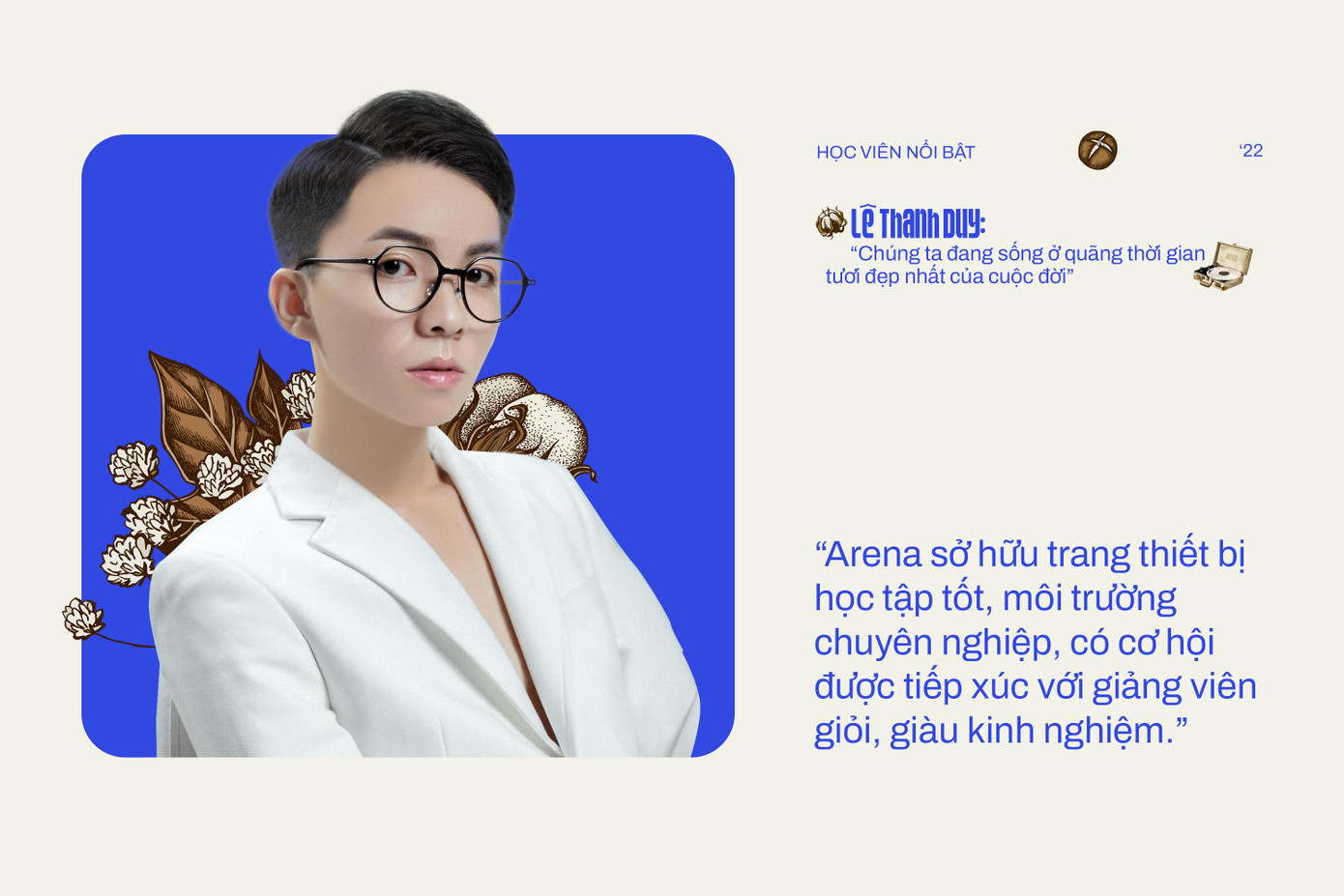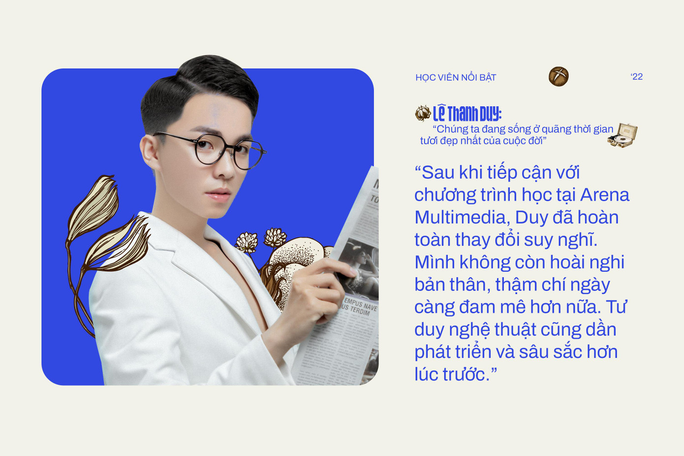 Thanh Duy tiết lộ: “Trong thời đại 4.0 hiện nay, sự kết hợp giữa vốn kiến thức tích lũy từ Arena với trải nghiệm của bản thân đã giúp mình có thêm kinh nghiệm để vận dụng và giải quyết nhiều vấn đề thực tiễn. Đồng thời, mình cũng trang bị cho bản thân kỹ năng xây dựng hệ thống trang cá nhân chuyên nghiệp hơn, đặc biệt là sự bắt mắt và thu hút trong các thiết kế.”