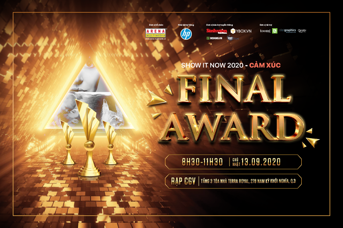 Những tác phẩm nào đã lọt vào top 20 bài thi xuất sắc nhất Đợt 3? Những suất học bổng đến từ trường Đào tạo Mỹ thuật Đa phương tiện Arena Multimedia sẽ thuộc về ai? Chủ nhân các phần quà đến từ Nhà tài trợ Vàng HP Việt Nam sẽ gọi tên thí sinh nào? Tất cả sẽ có tại Final Award - Lễ trao giải cuộc thi Show It NOW Đợt 3. Sự kiện được livestream trực tiếp trên trang Fanpage chính thức của Show It NOW và Arena Multimedia.