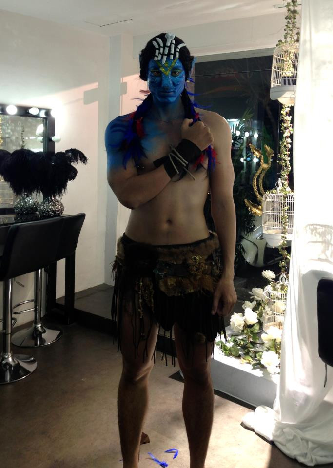 Chuẩn bị: Giảm cân 3 kg để bớt cơ bắp, vậy mới ra người Navi. Dọn sạch lông dưới cánh tay, trên hai tay và trên hai chân. Bé nhận bốn vết thương vì việc này, chảy máu quá trời, do không có kinh nghiệm 'dọn lông'.