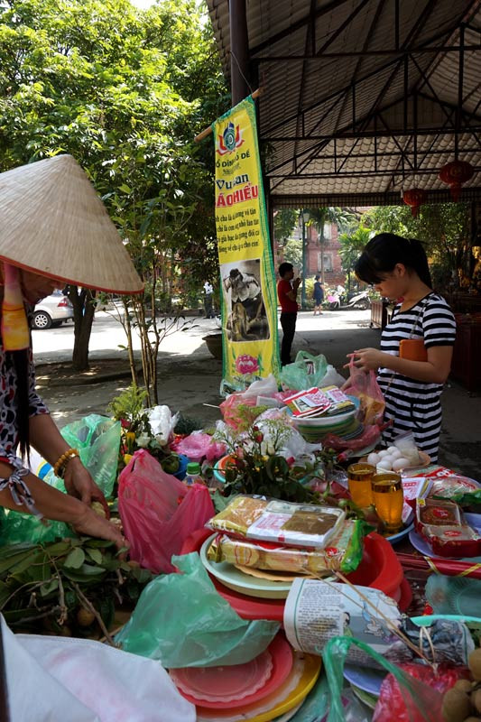 Phật tử sắp lễ tại chiếc bàn theo qui định.