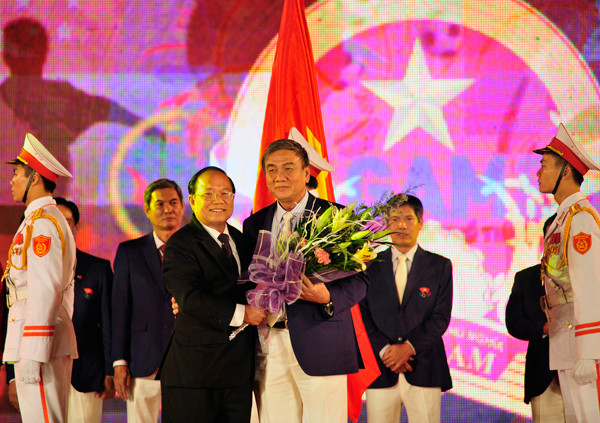 Sau lời phát biểu của ông Lâm Quang Thành - Phó Tổng cục trưởng Tổng cục TDTT và lời tuyên thệ của VĐV Nguyễn Thị Thúy bộ môn Pencak Silat, Bộ trưởng Hoàng Tuấn Anh đã trao lá cờ Tổ quốc và giao nhiệm vụ cho Đoàn Thể thao Việt Nam trước khi lên đường sang Myanmar tham dự ngày Hội Thể thao khu vực Đông Nam Á lần thứ 27.