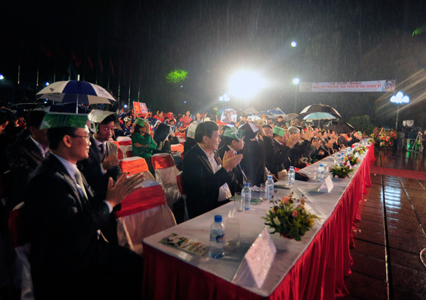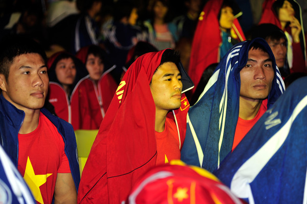 Dưới cơn mưa đôi lúc khá nặng hạt nhưng không khí thật xúc động và khí thế mang những khát vọng và quyết tâm của vđv ưu tú sẽ mang màu cờ sắc áo mang vinh quang về cho Việt Nam.