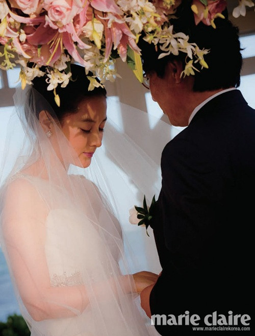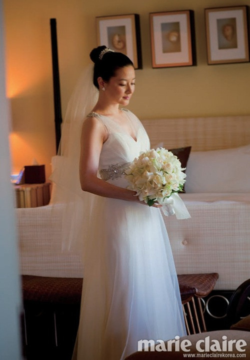 Sau một thời gian vắng bóng, người đẹp 40 tuổi quyết định công khai những bức ảnh cưới của cô trên tạp chí Marie Claire số tháng 11.