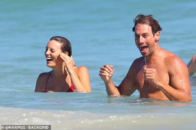 | Nữ diễn viên sinh năm 1992 mặc bộ áo tắm 2 mảnh màu đỏ rực rỡ xuất hiện ở biển. |