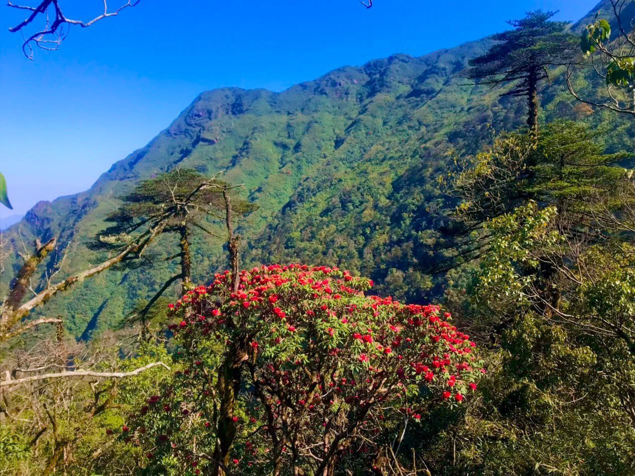 Trải nghiệm ngắm hoa đỗ quyên còn hấp dẫn hơn khi được kết hợp với việc chinh phục đỉnh Fansipan. Trong hành trình khám phá “Nóc nhà Đông Dương”, du khách có thể được tận mắt chiêm ngưỡng hình ảnh những gốc đỗ quyên cổ nơi lưng chừng trời ở độ cao hơn 2.000m. Những khóm đỗ quyên đầu tháng 4 đang bung nở từ những thân cành khô mọc cheo leo nơi vách đá, dệt thành những thảm hoa màu sắc tuyệt đẹp. Lên đến đỉnh, du khách còn được trải bước trên con đường hoa đỗ quyên dẫn đến những địa điểm tâm linh, hoàn thiện thêm trải nghiệm chiêm bái nơi đỉnh thiêng.