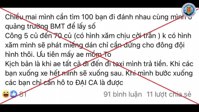 Ngày 6/4, Phòng An ninh mạng và Phòng chống tội phạm sử dụng công nghệ cao, Công an tỉnh Đắk Lắk cho biết, đơn vị đã làm việc với người đăng tải, phát tán thông tin sai sự thật, kích động bạo lực.