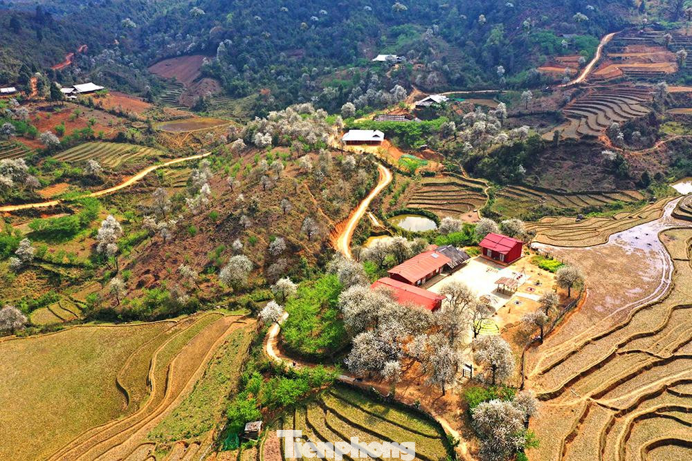| Hoa nở mang cảm giác xao xuyến, lãng mạn trên những nếp nhà của người Mông đơn sơ bên sườn núi. |