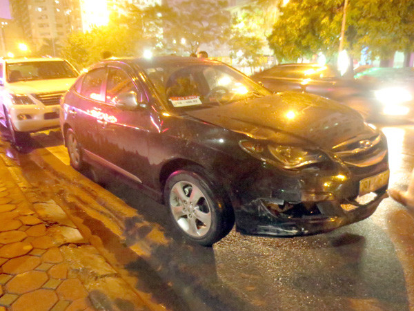 Chiếc xe Hyundai Avante tại hiện trường vụ tai nạn
