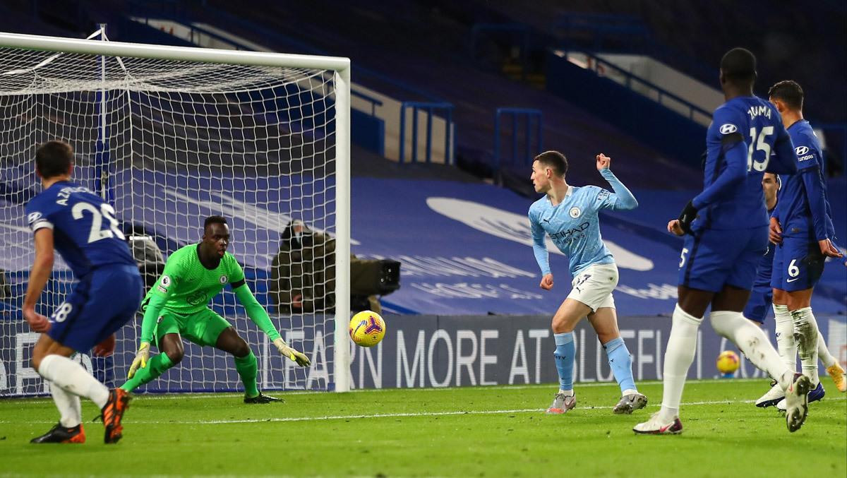 Phút 36 của trận đấu, B.Mendy và Gundogan của Man City đã có sự không hiểu ý, Pulisic đã tận dụng thời cơ cướp lấy bóng, tăng tốc vượt qua hai cầu thủ này và băng băng về phía khung thành thủ môn Ederson. Cú đặt lòng nhẹ nhàng của Pulisic là đủ để đánh bại thủ thành Ederson giúp Chelsea dẫn trước 1-0.